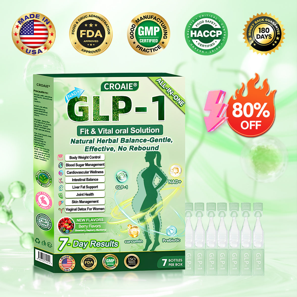 Every box of Croaieยฎ GLP-1 ALL-IN-ONE Fit&Vital Oral Liquidย comes with our strict 180-day guarantee.Use as directed and experience visible improvements in your weight, vitality, and overall wellness.